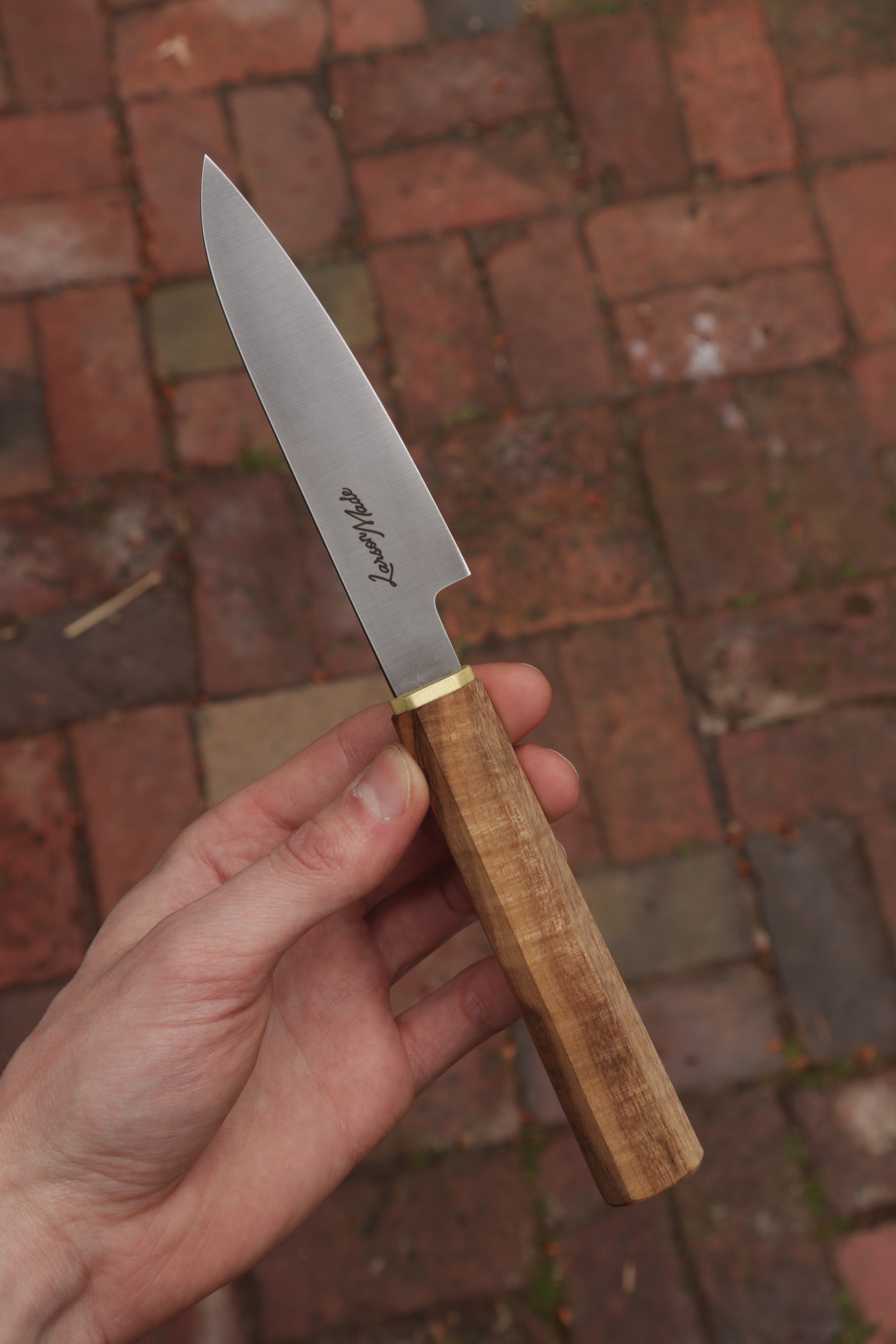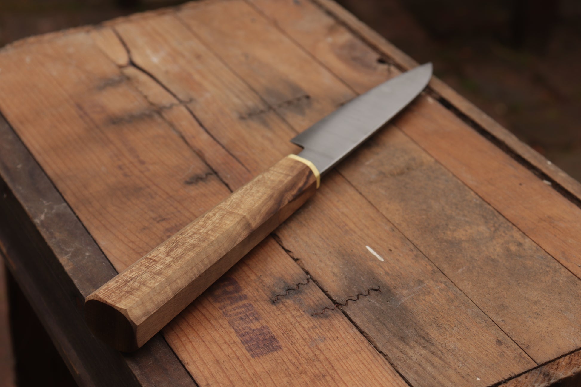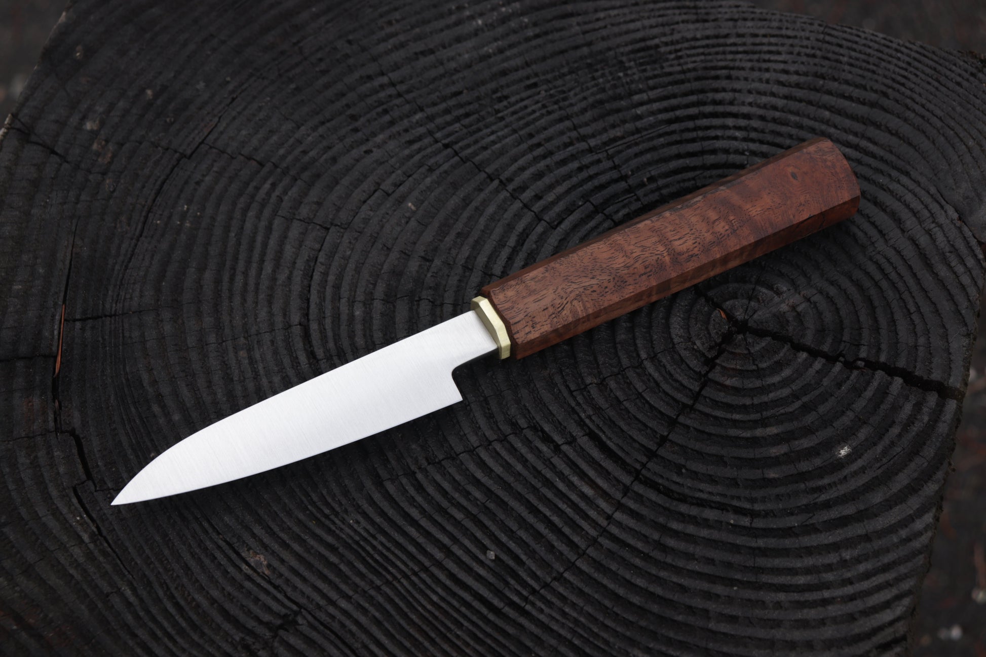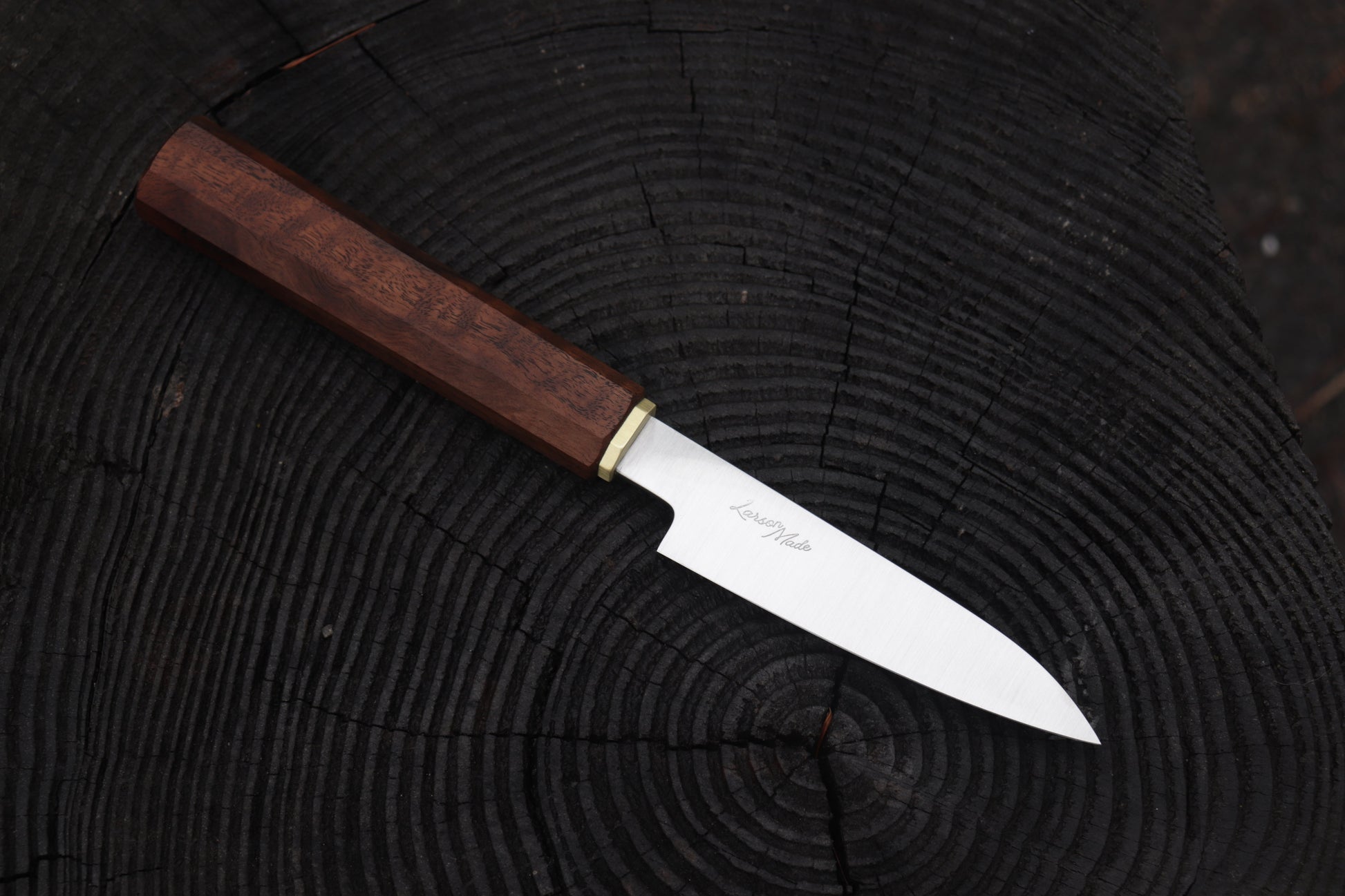 Small but mighty, the paring knife is a cornerstone of any kitchen. Whether you're new to handmade knives or a veteran collector you can enjoy using this knife every day for your smaller or delicate cutting tasks. Combined with a chef's knife of your choosing this duo will have your bases covered.