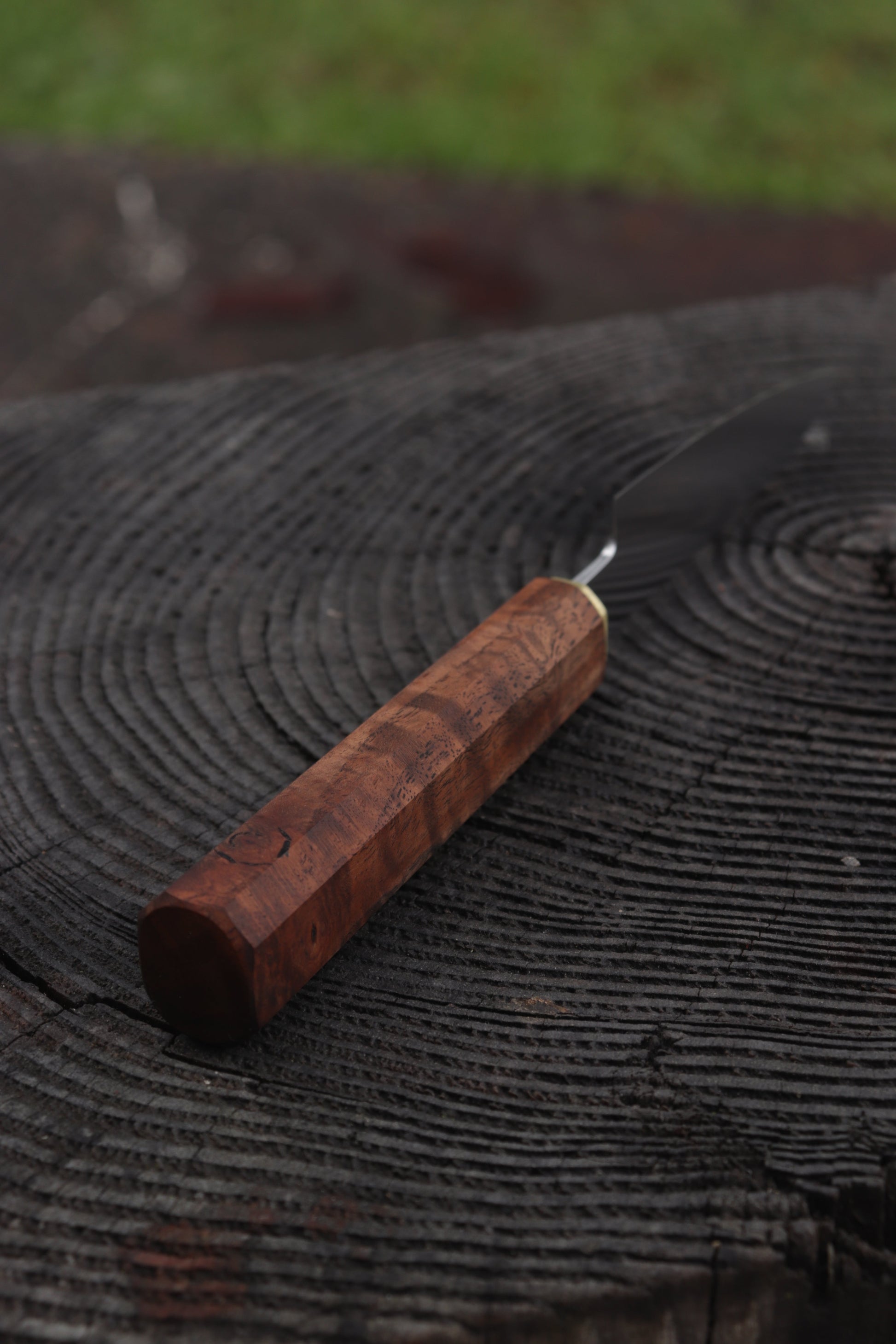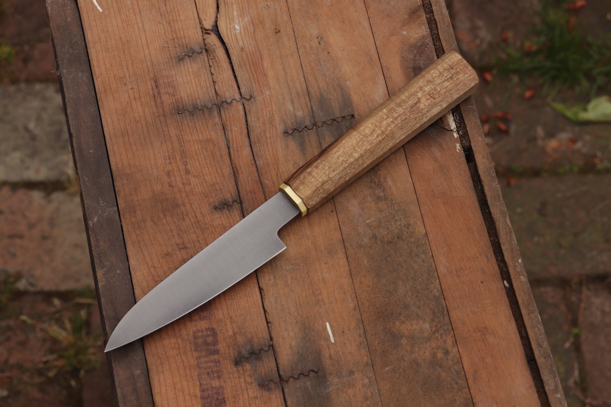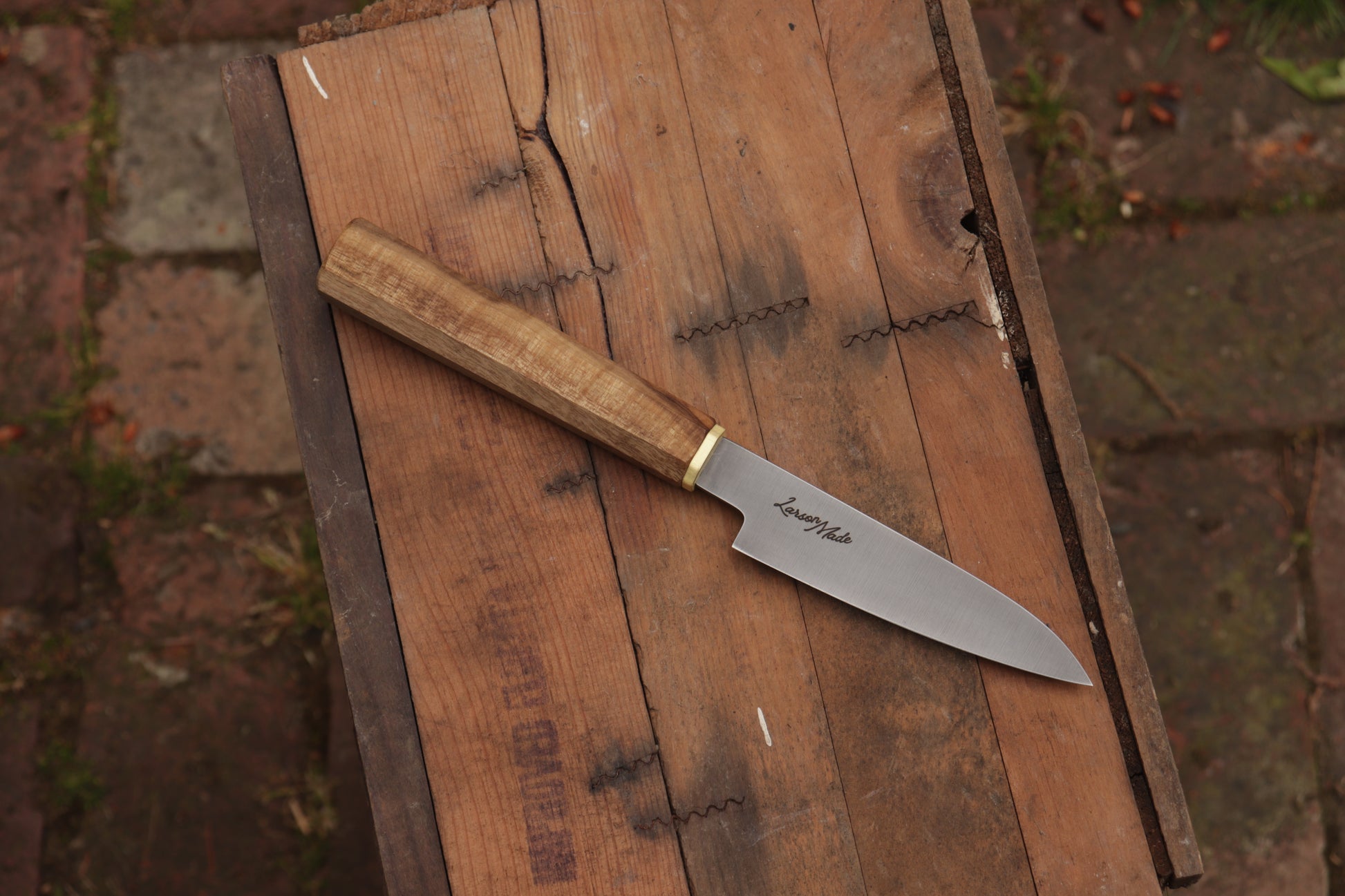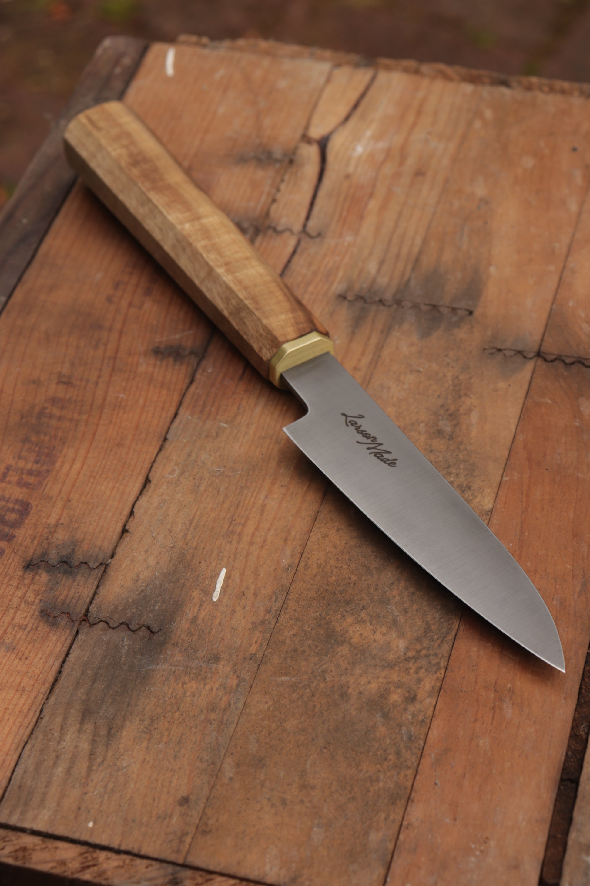 Small but mighty, the paring knife is a cornerstone of any kitchen. Whether you're new to handmade knives or a veteran collector you can enjoy using this knife every day for your smaller or delicate cutting tasks. Combined with a chef's knife of your choosing this duo will have your bases covered.