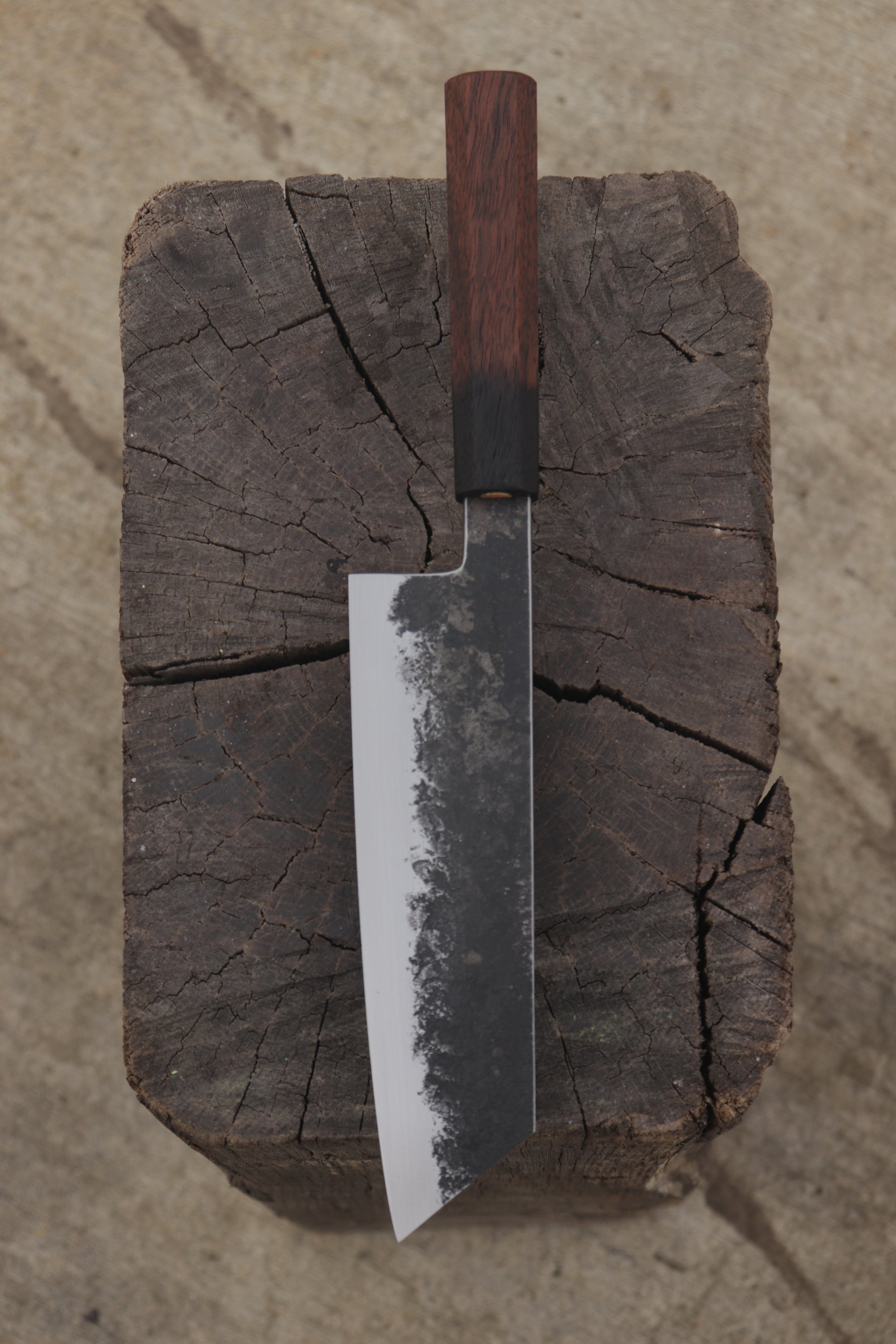 The bunka is one of the trending profiles on the market right now and for good reason. It's a riff on the timeless and forever useful santoku with more angular features. The Bunka has a more aggressively established tip to make short work of fine detail cutting tasks while having a perfect amount of belly in the blade to handle rock chopping as well as pushing cutting. Hand forged stainless steel gives this knife it's traditional Japanese style knife looks while being very easy to care for. A versatile knife ready to earn its spot in your knife roll.